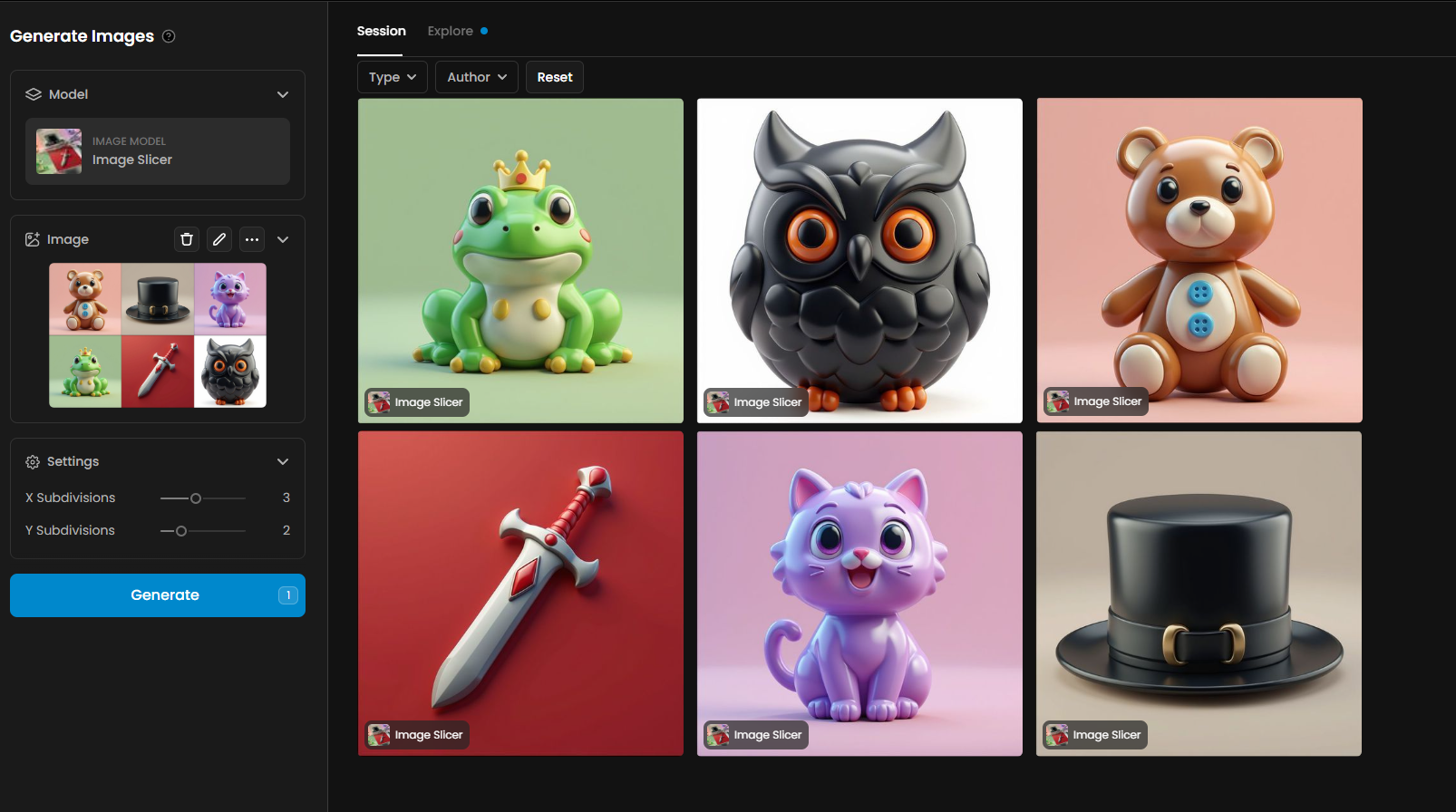 Generate slices – click the generate button. The tool cuts the image into equally sized parts and saves each slice as an individual file.