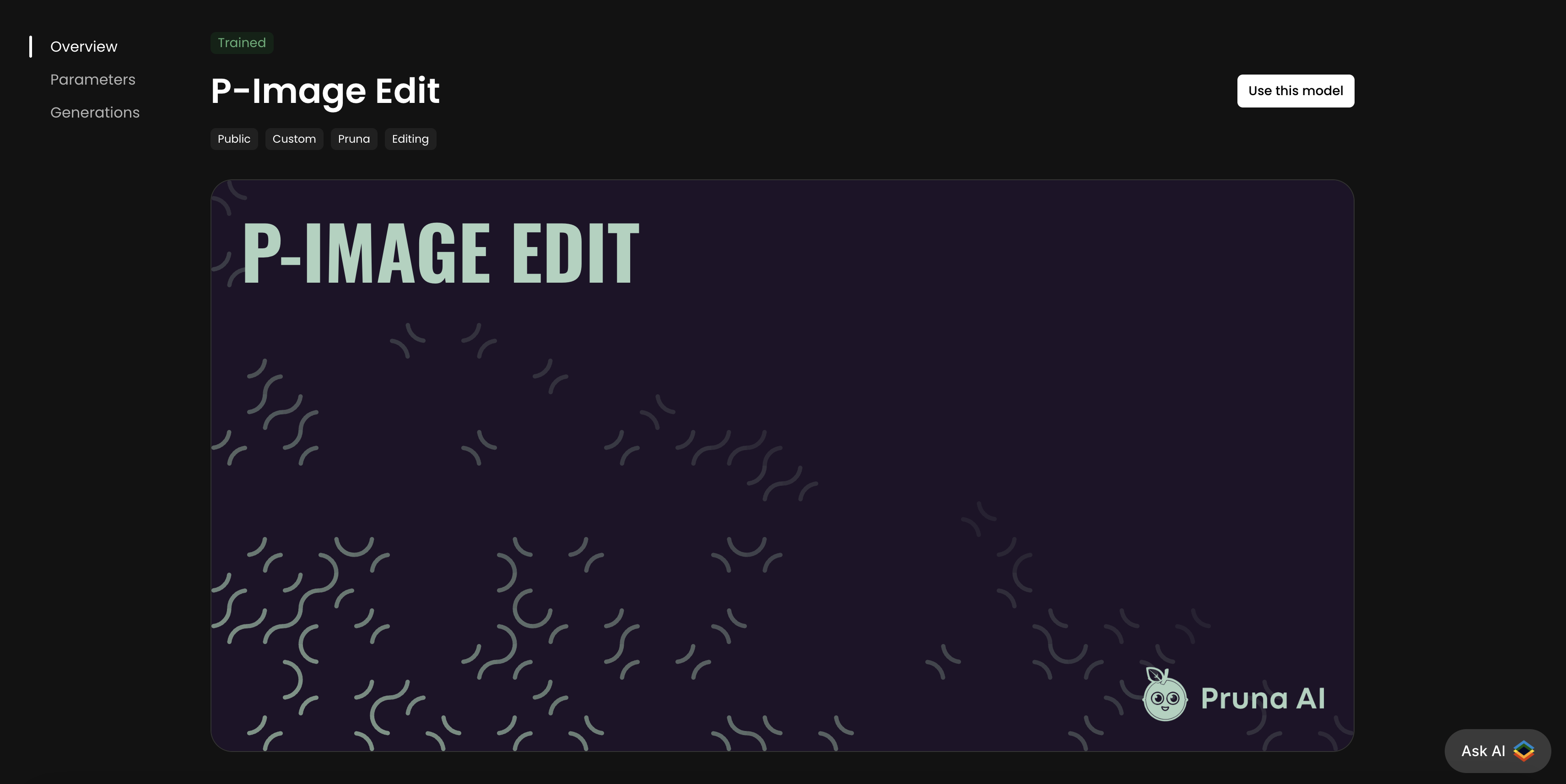 P-Image Edit is the editing counterpart of P-Image and appears under Edit with Prompts.
