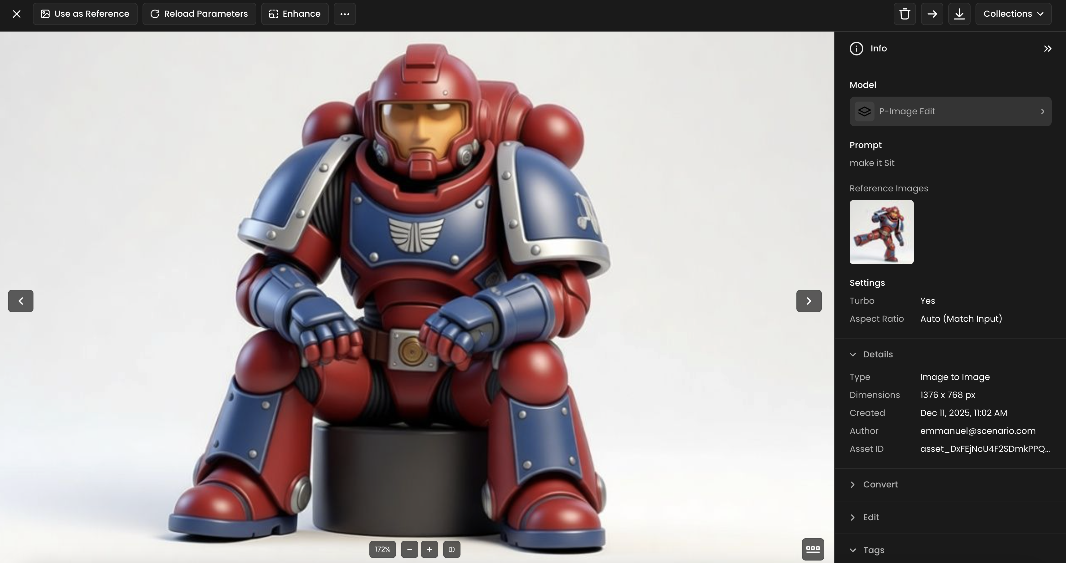 P-Image (Image Gen) and P-Image Edit (Edit with Prompts) are Scenario’s fast, low-cost models built with Pruna optimization.