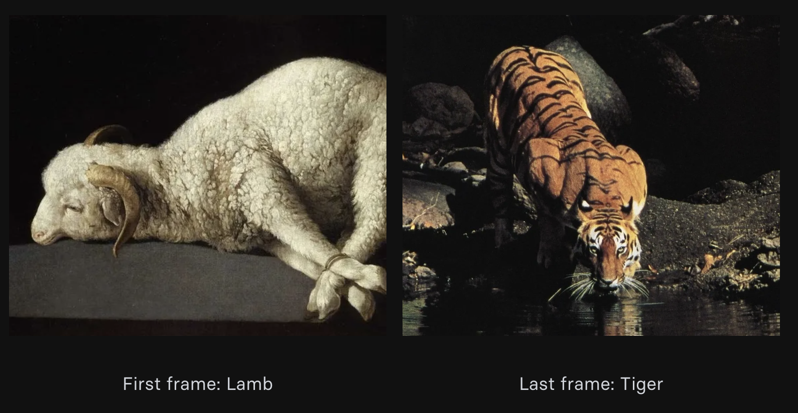Here’s a cool example where we used first and last frame to create a morphing transformation from a lamb to a tiger: