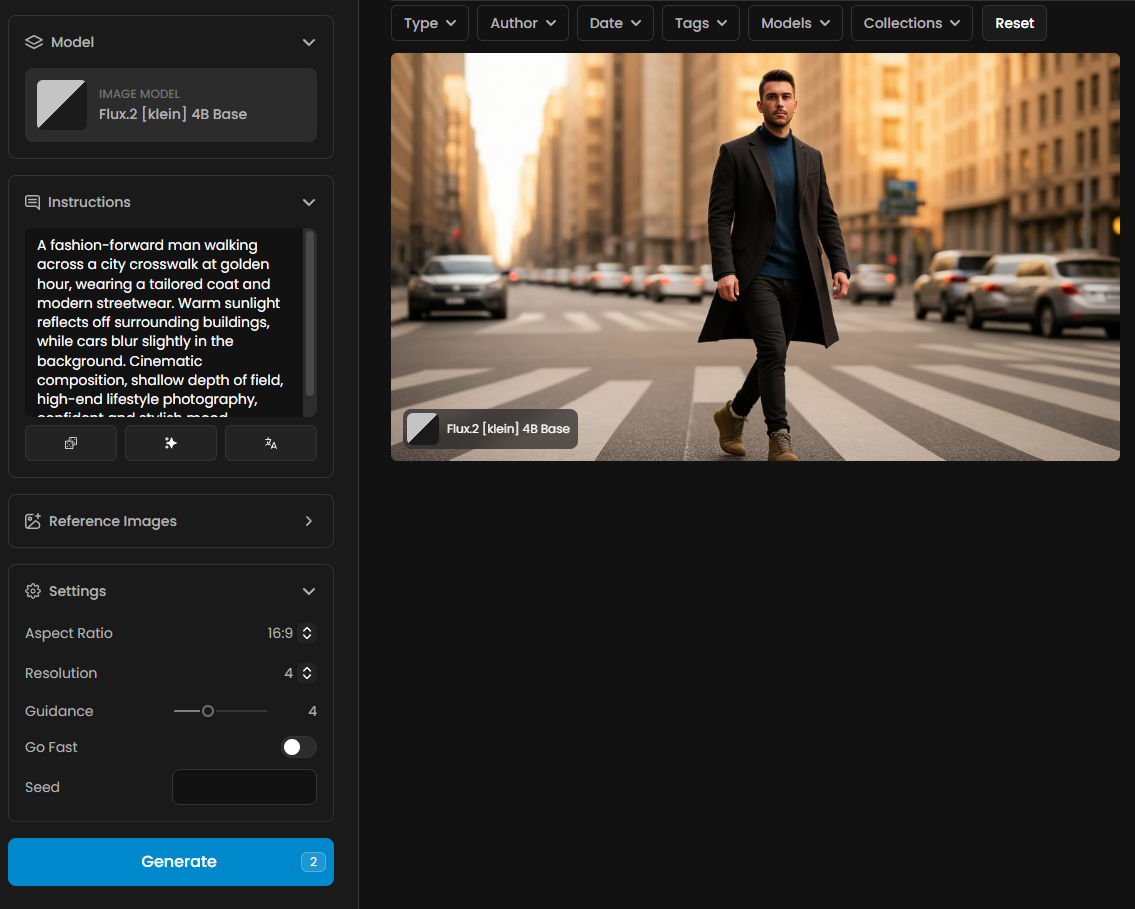 Guidance Control: Features a dedicated Guidance slider (defaulted at 4), allowing you to fine-tune how strictly the model follows your prompt.