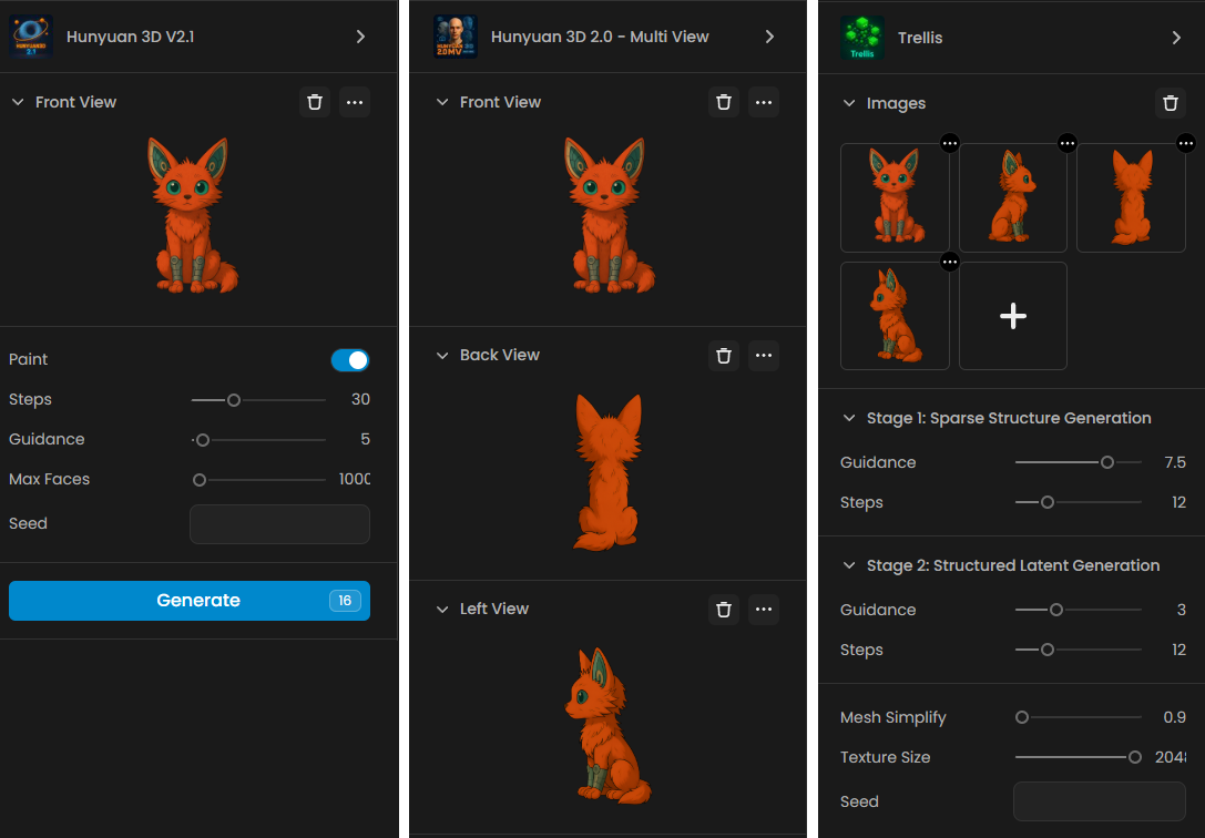 Multi-View Accuracy: Select Hunyuan 3.0 (MultiView) or Tripo 2.5 (Multiview) if you have multiple angles of your object to ensure geometric symmetry.
