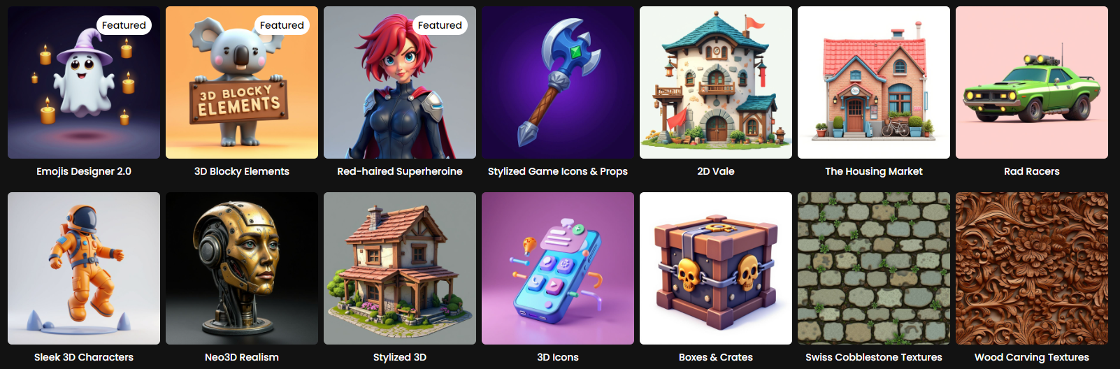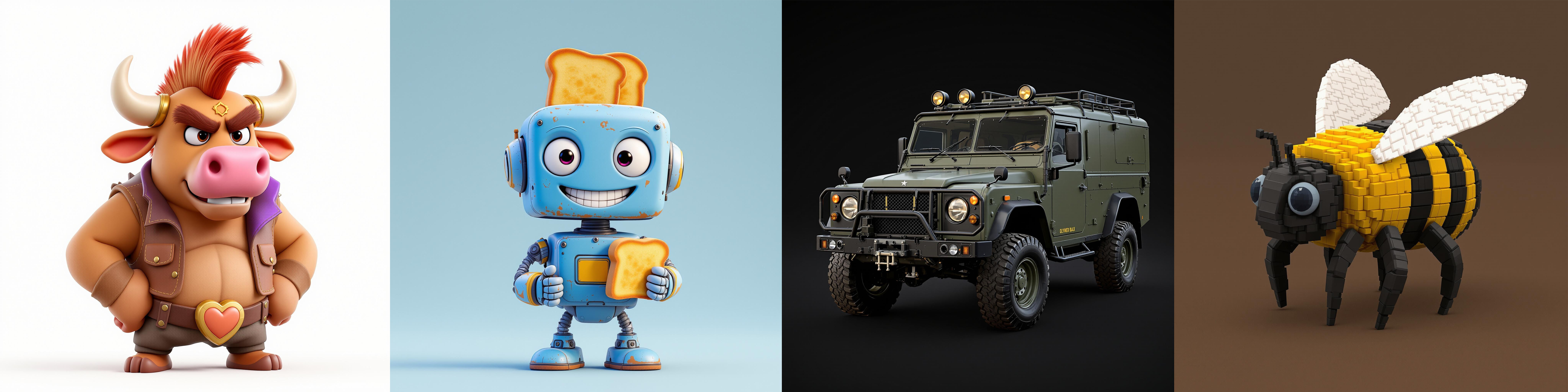 Stylized 3D: Generates detailed 3D-style renders with a distinct stylized aesthetic.