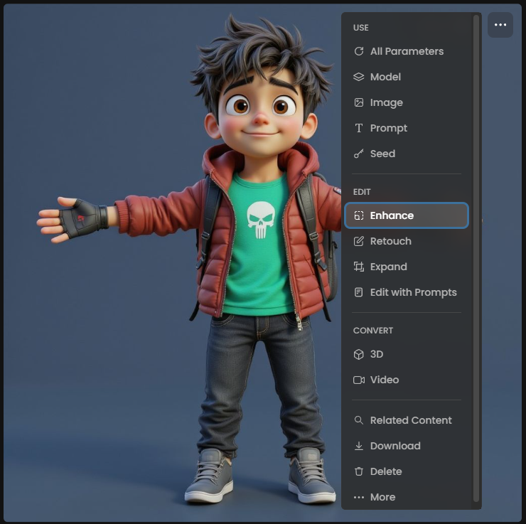 If you have a single image and need more reference angles, you can use the Edit with Prompts tool to manually expand your asset library.