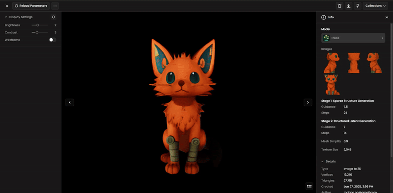 Click "Generate" to begin. Processing time depends on model complexity (e.g., Hunyuan 3.0 handles massive voxel counts), step settings, and server load (especially for initializing the model if it’s “cold”)