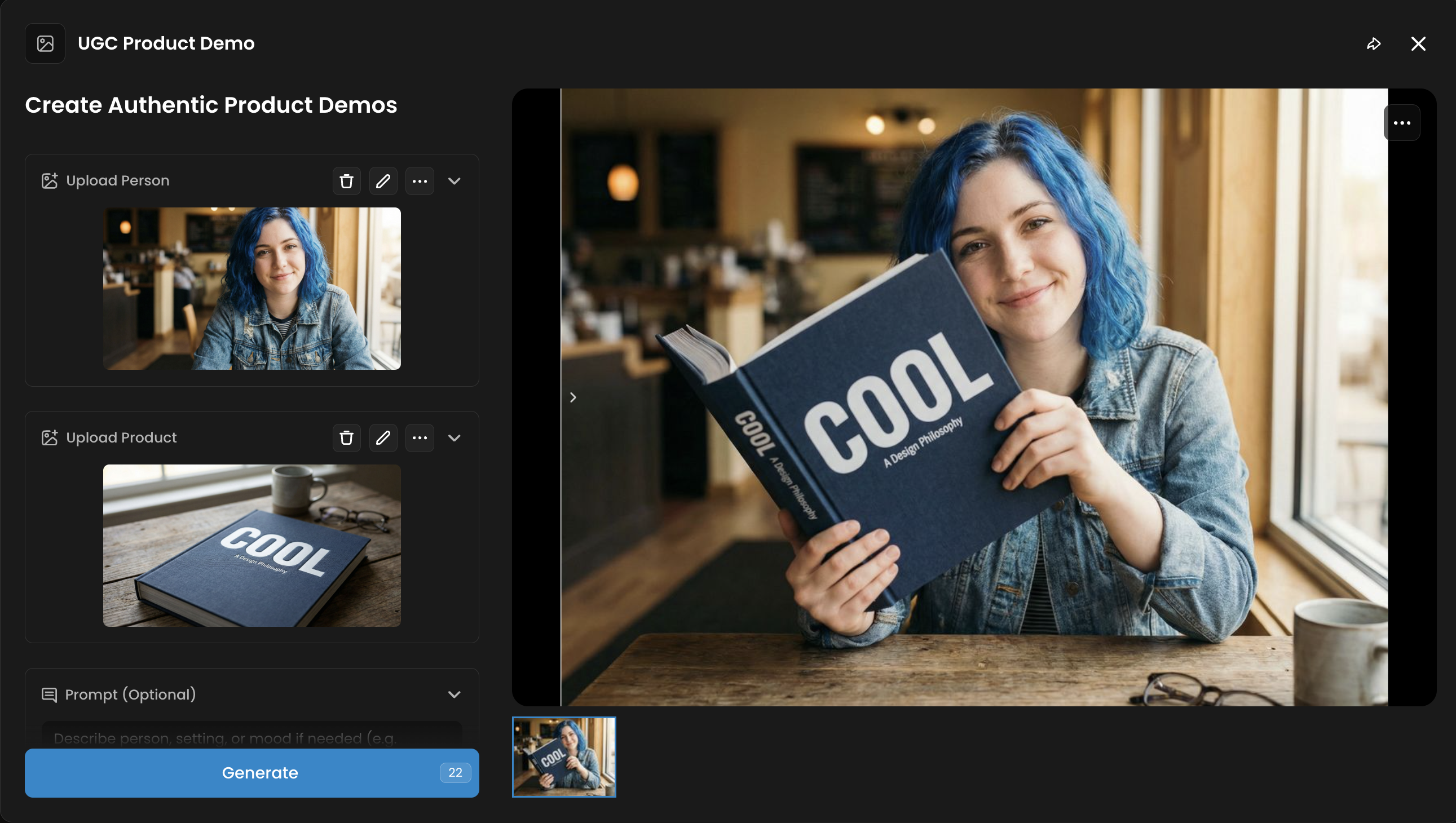UGC Product Demo produces visuals that look like user-generated content. It shows people interacting with a product in everyday environments, helping brands build authenticity and social proof.