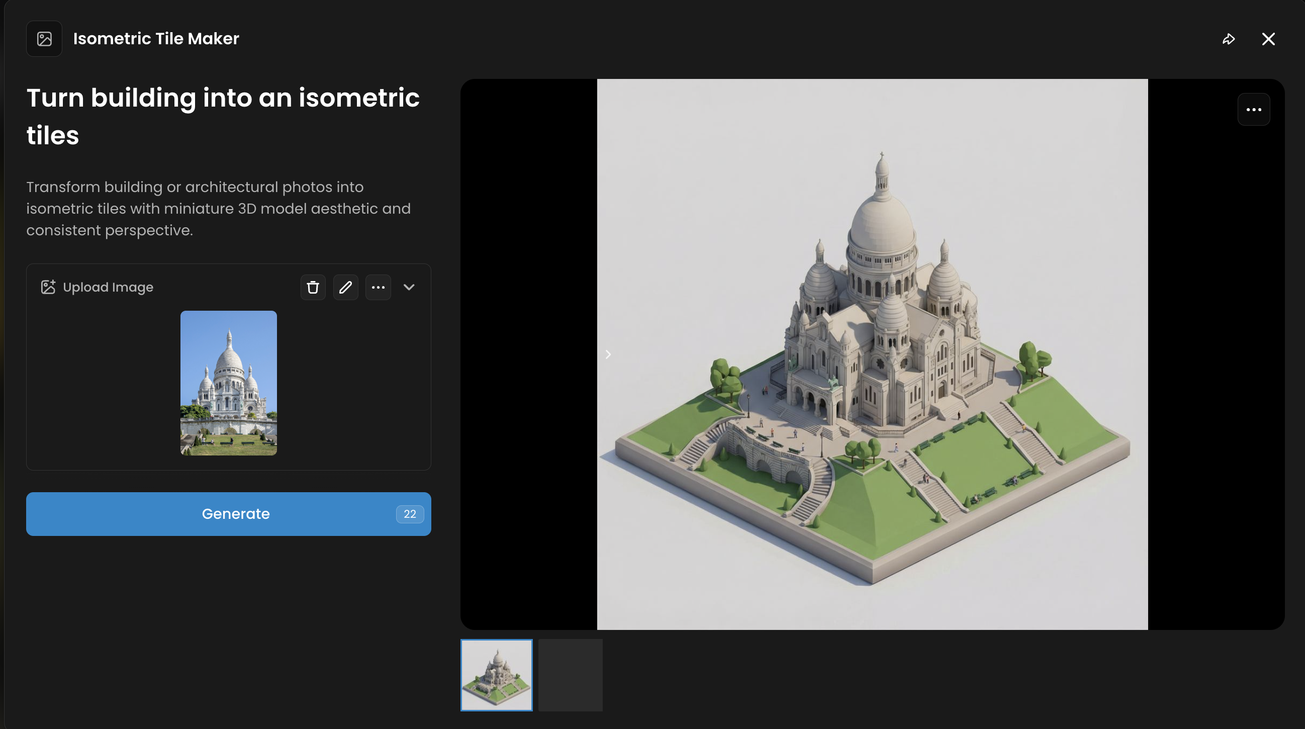 Generates seamless tiles for building isometric maps. All tiles share perspective and style, making it easy to construct levels.