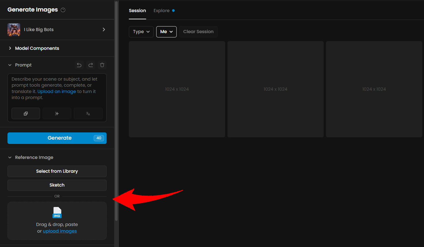 On the image generation page, open the "Reference Image" section and add your reference image.
