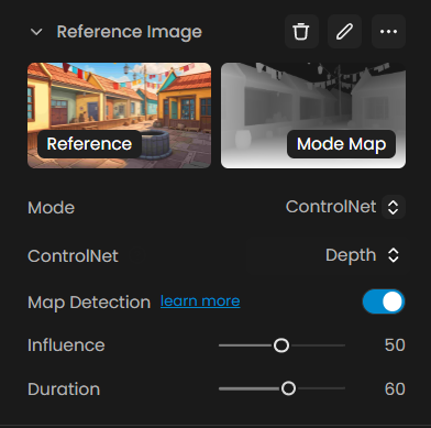 When working in ControlNet mode, two sliders, Influence and Duration, help you control how much the reference guides the final image.