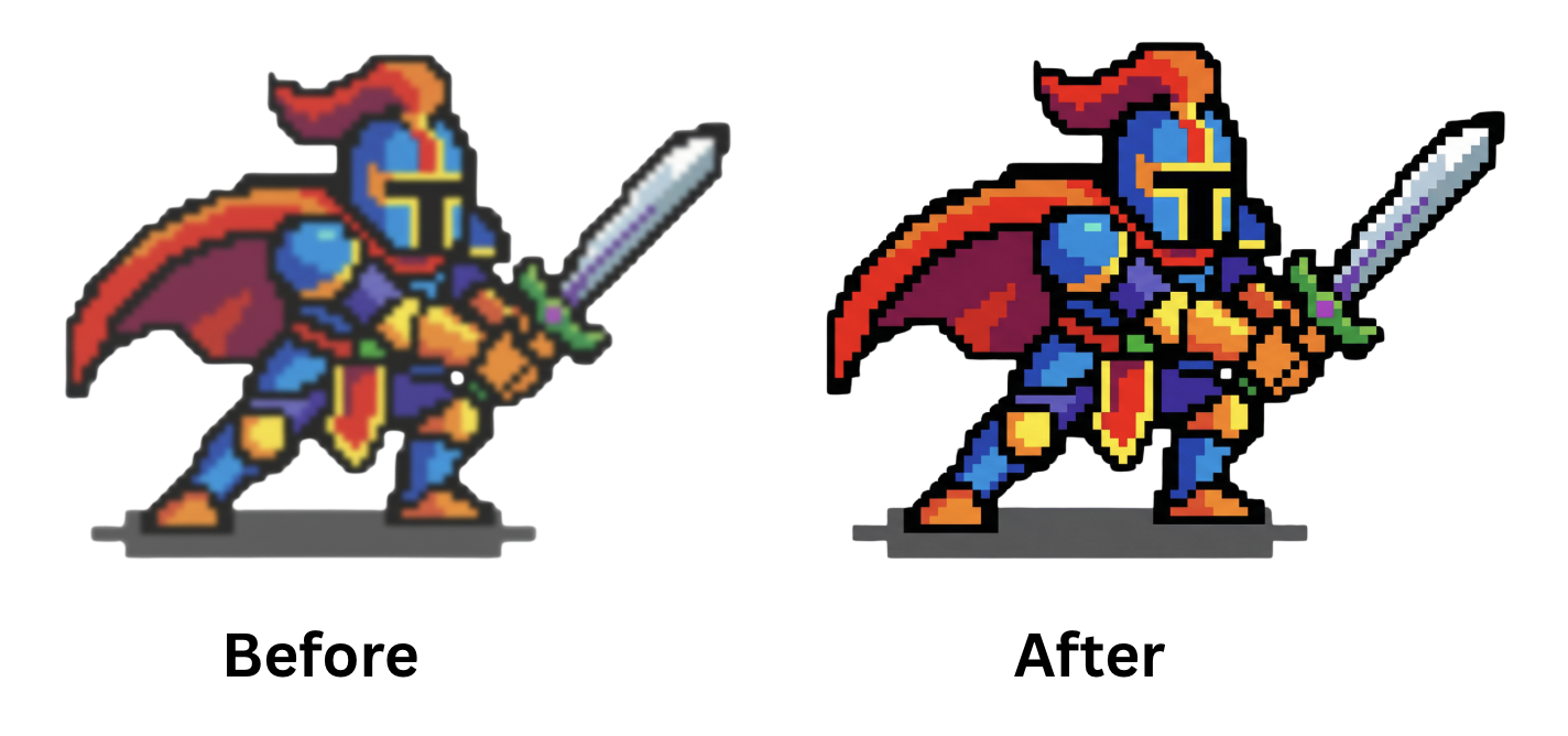 3D texture baking: The tool can clean up pixelated textures baked from 3D models, making them usable in pixel art games or retro‑themed projects.