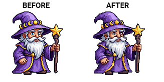 Quantised palette: Colours are reduced to a strict, quantised palette, eliminating stray shades and banding issues. This helps keep assets cohesive and ready for engines that limit colour counts.
