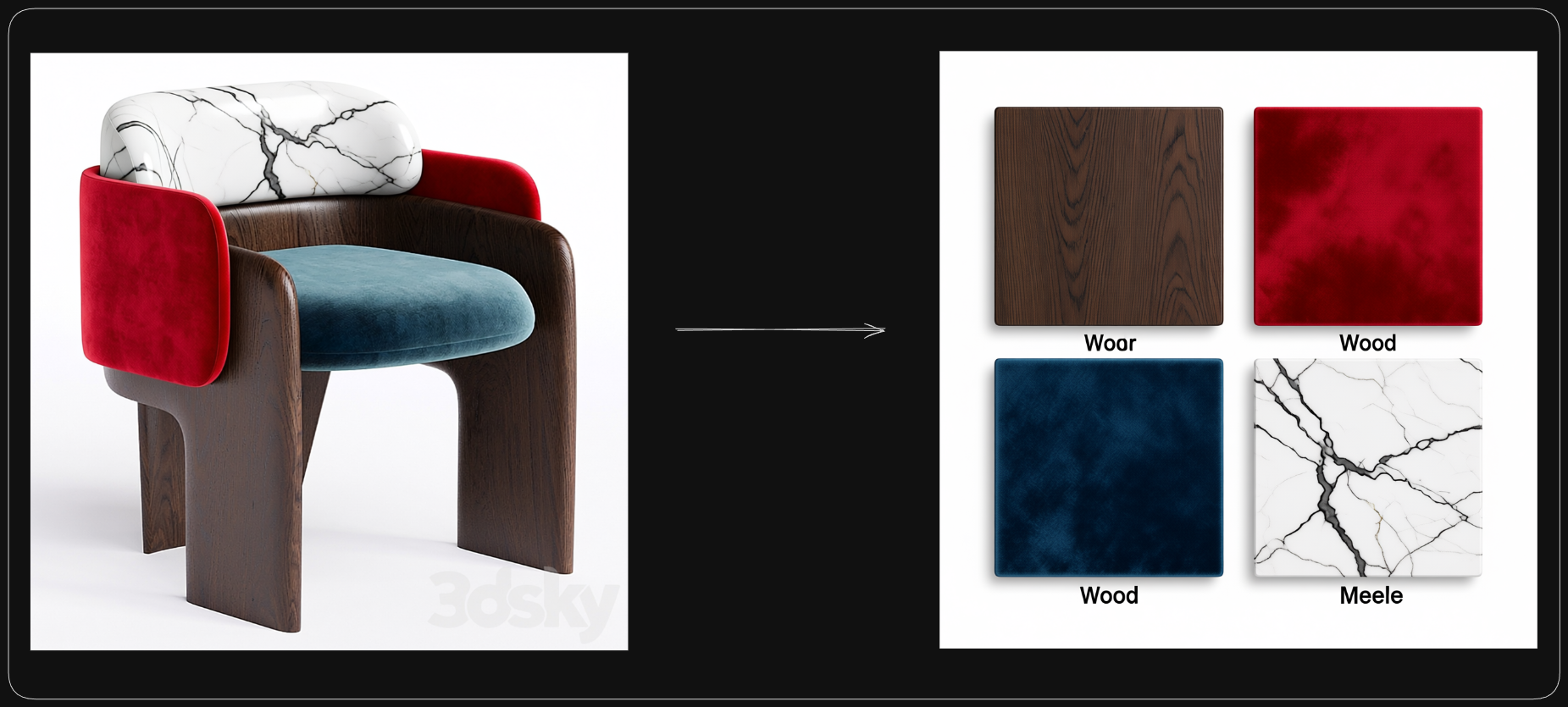 A LoRA trained to extract materials from an image and present them as samples in a board.