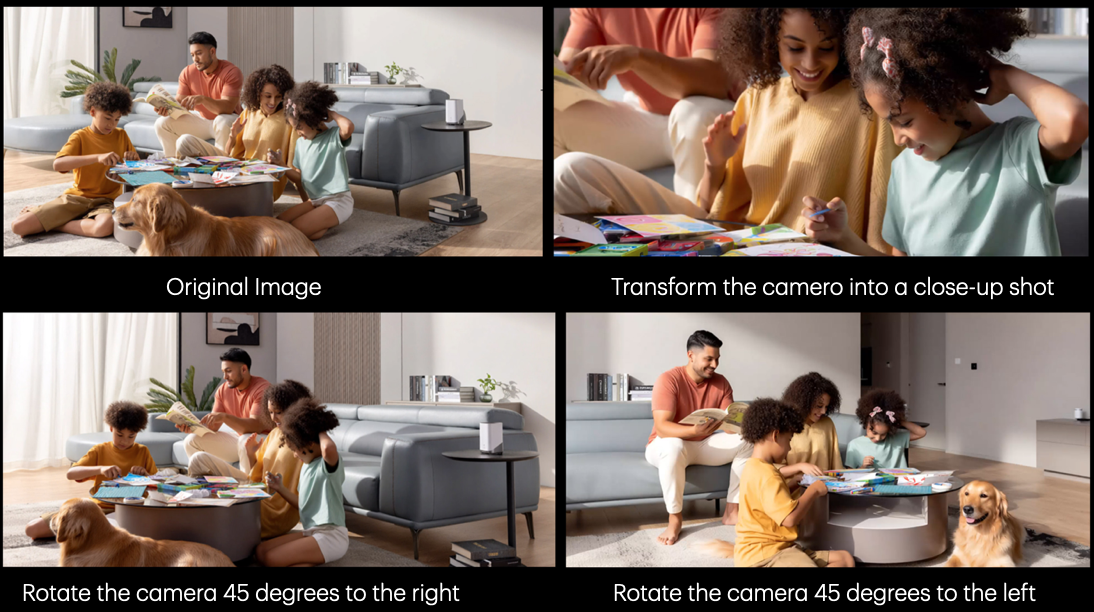 Behind the scenes, the LoRA modifies the model’s latent camera parameters while preserving object identity and overall scene consistency.