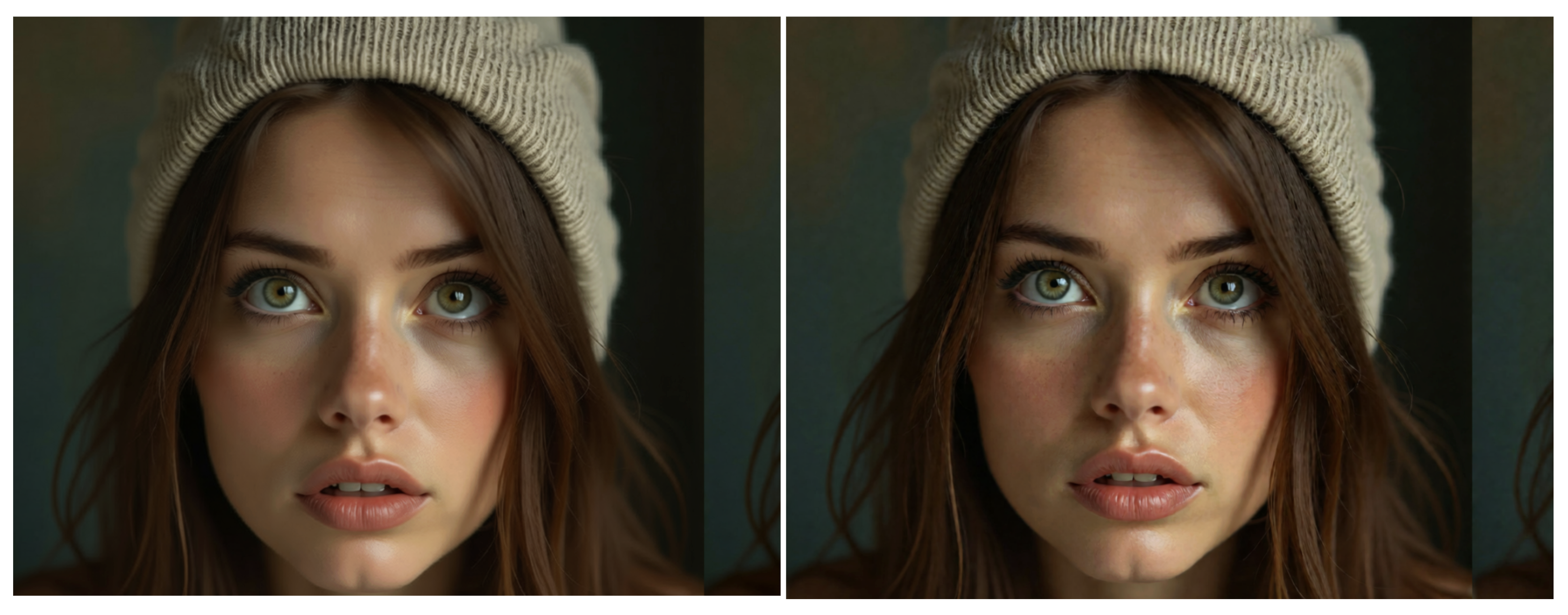 Edit Skin is a specialized LoRA for enhancing the realism of human skin. It adds pores and subtle surface texture to faces and bodies, resulting in a more natural appearance compared with the base model. A LoRA strength of 1.0–1.5 is recommended (the examples use higher values for demonstration purposes). This LoRA is particularly useful for digital artists, photographers, and AI creators who want to improve the realism of portraits.
