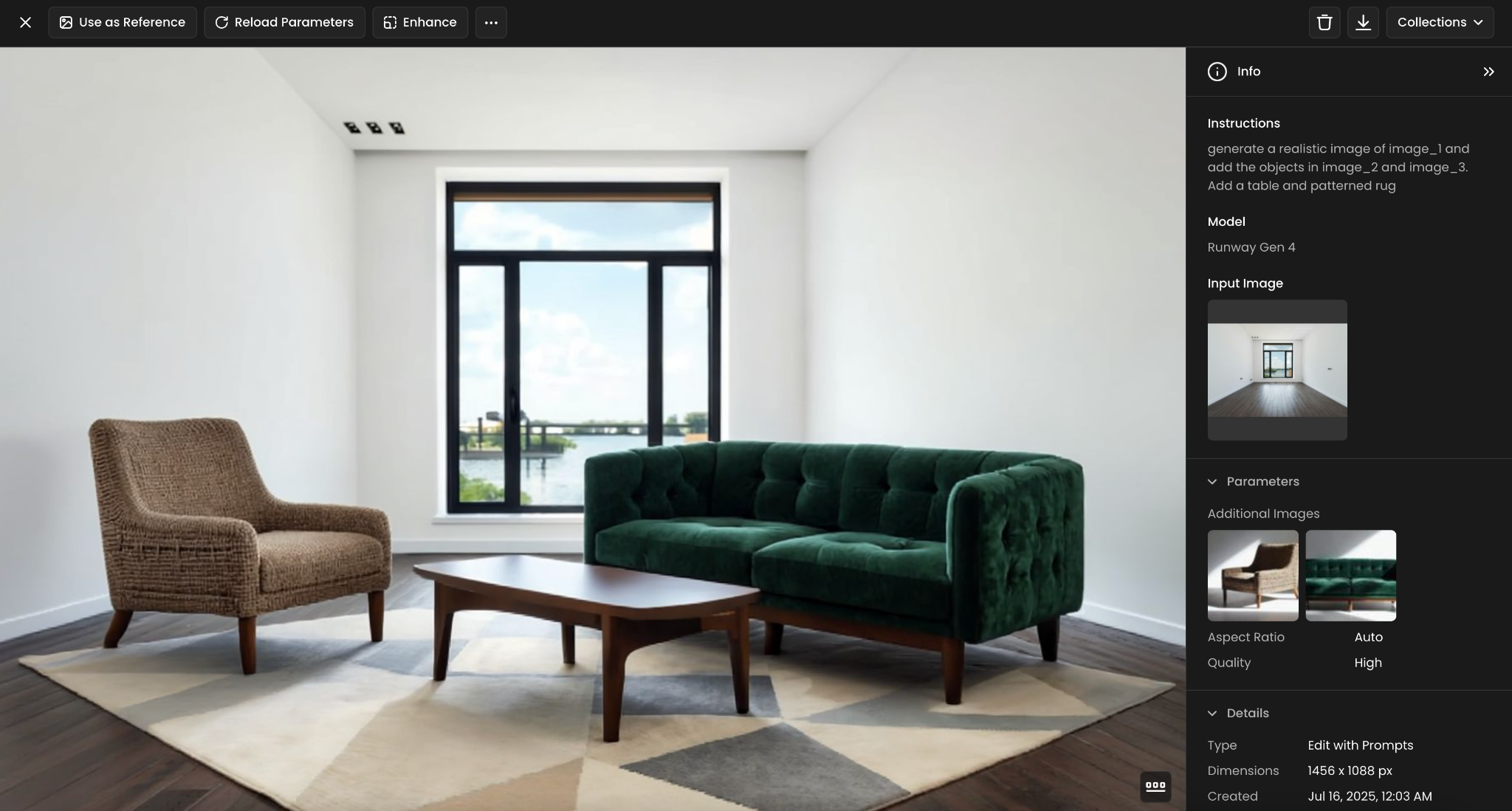 References transform home or set staging by allowing you to upload a single image of an interior space and then add furniture references to place them directly into the scene.