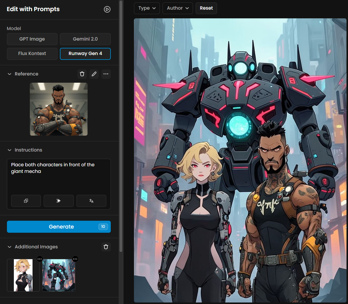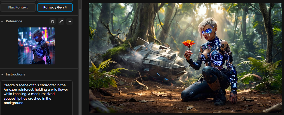 Runway Gen-4 References is a highly capable image generation model that combines visual coherence with creative flexibility. Its strengths—consistent character rendering, multi-subject integration, and support for stylistic variation—make it well-suited for a wide range of creative workflows. From visual development and storytelling to rapid iteration across genres, Gen-4 empowers creators to translate complex ideas into compelling visual narratives.