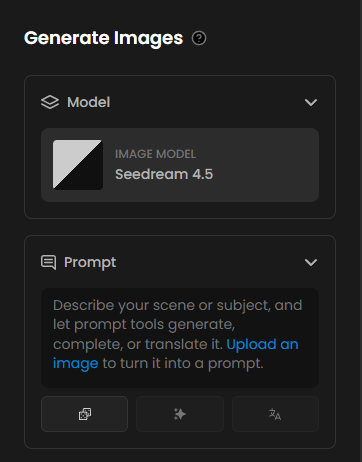 Seedream 4.5 or 4.0 are accessible via Scenario’s AI image generation interface. To generate or edit images with Seedream: