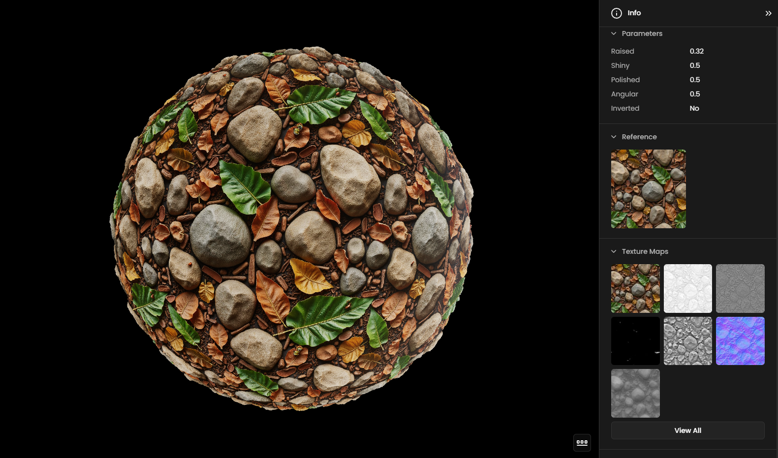 Open the 3D viewer: Click on any result to open it in the 3D Viewer, which displays your texture applied to a 3D object.