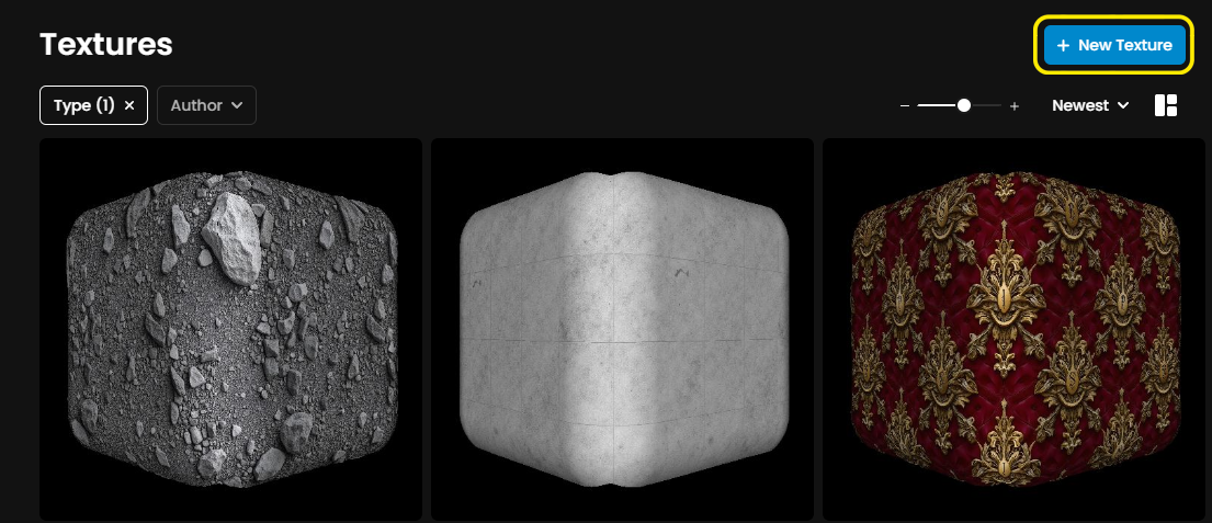 Log in to app.scenario.com, navigate to the left panel and click on "Textures" > "+New".